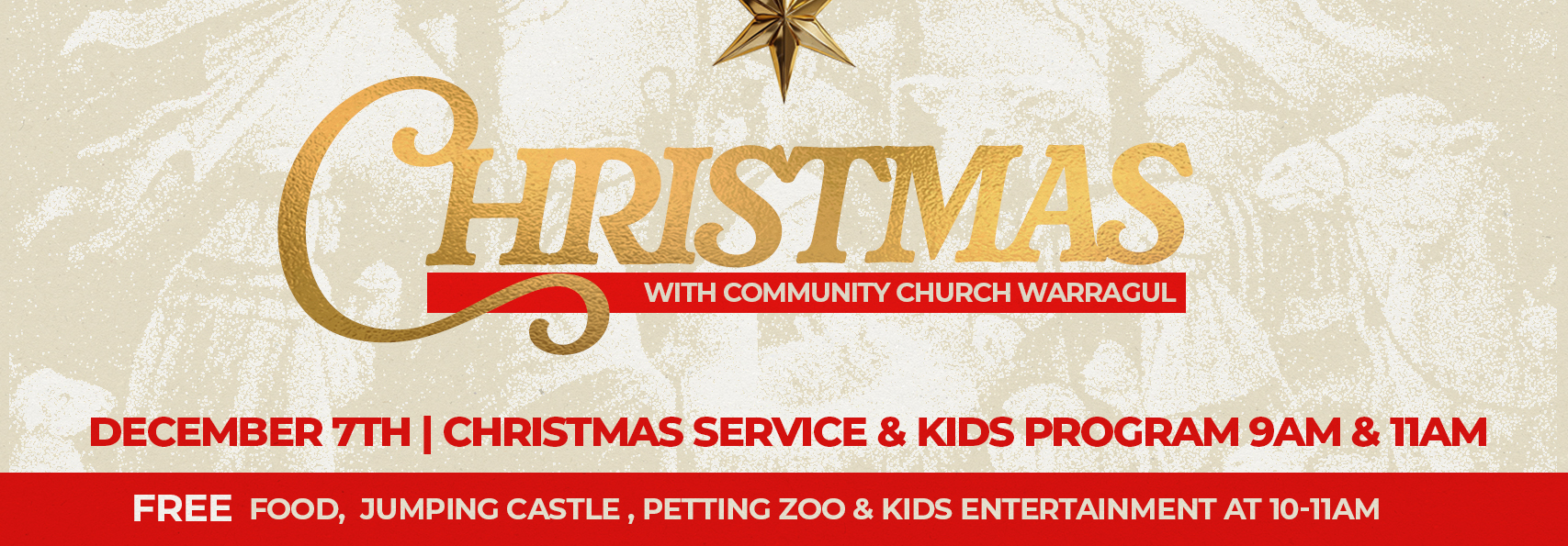 Join us for a joyful Christmas Celebration at Community Church Warragul on Sunday, December 7! We’re running two Christmas services at 9 & 11am filled with carols, fun, a message of hope, and plenty of festive fun for the whole family. Between 10–11am, bring the kids for free activities including children’s entertainment, a petting zoo, and a jumping castle. We’ll also have a free sausage sizzle and snacks, with barista-made coffee available for purchase.